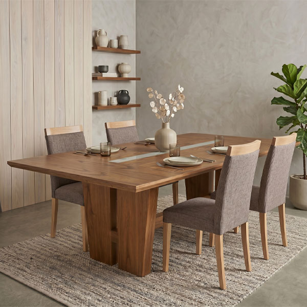 - Versatilidad Estética: Su tono natural y líneas limpias permiten que combine perfectamente con sillas tapizadas (como las de la imagen anterior), de madera o de estilo industrial.