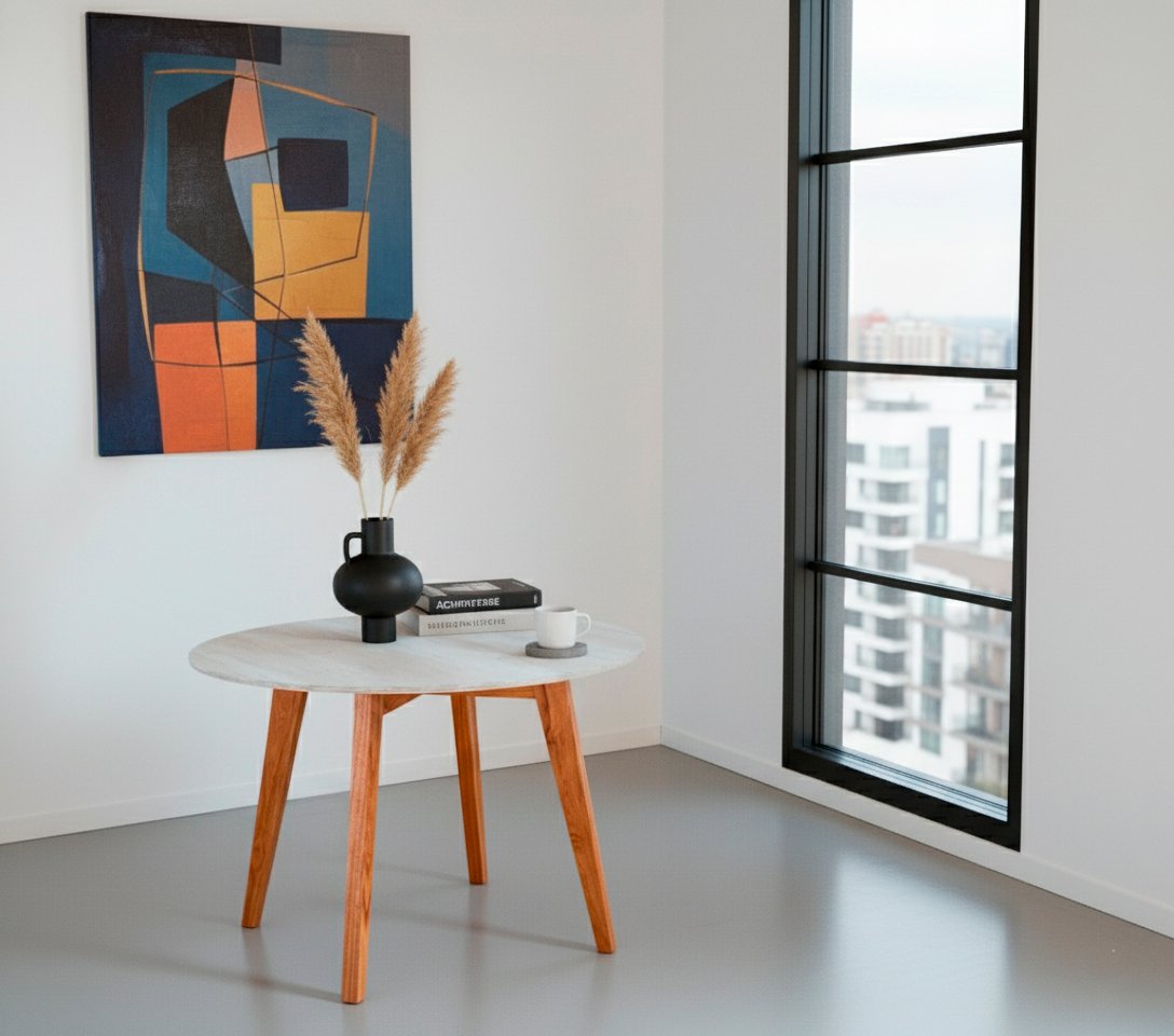 Tamaño Versátil: Su formato redondo fomenta la conversación y la conexión, siendo ideal para comidas íntimas, reuniones casuales o como superficie de trabajo.