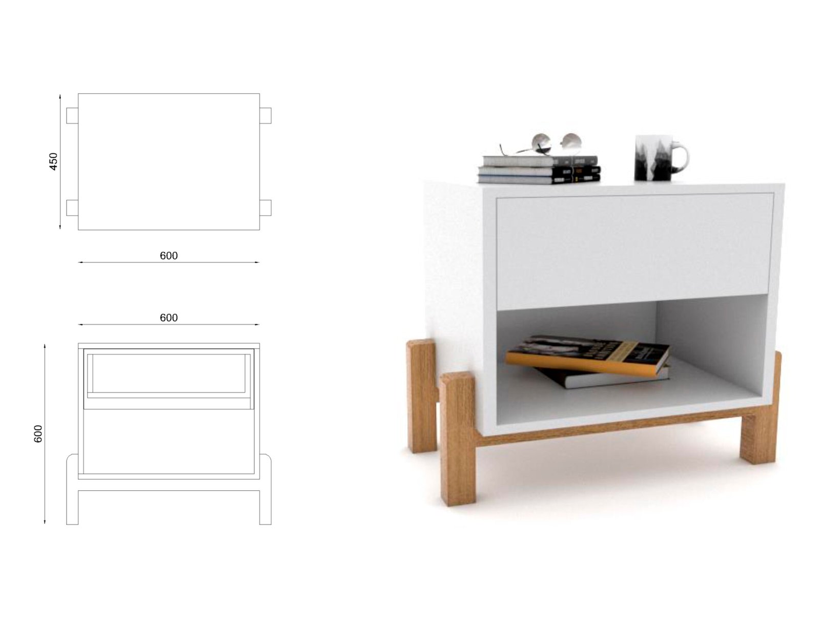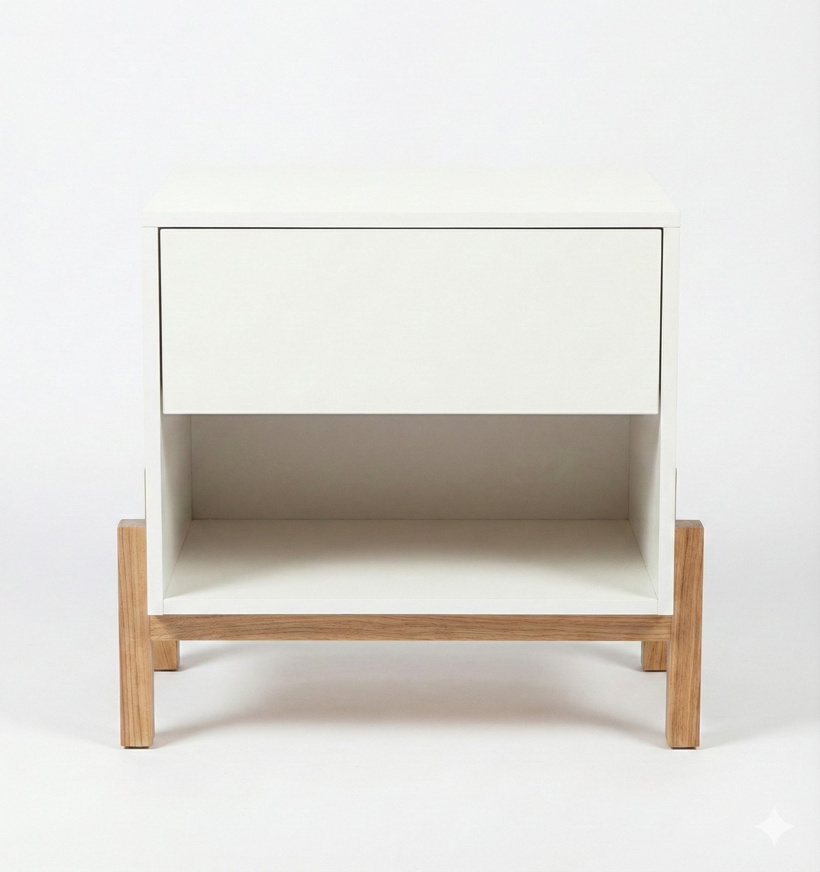 • Diseño Funcional: Cuenta con un cajón amplio con frente liso (sin tiradores a la vista) para guardar tus objetos personales y mantener el orden visual.