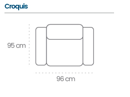 - Medidas: Ancho 96 cm x Profundidad 95 cm (145 cm extendido) x Altura 1,00 m x Altura del asiento 50 cm (aproximado)