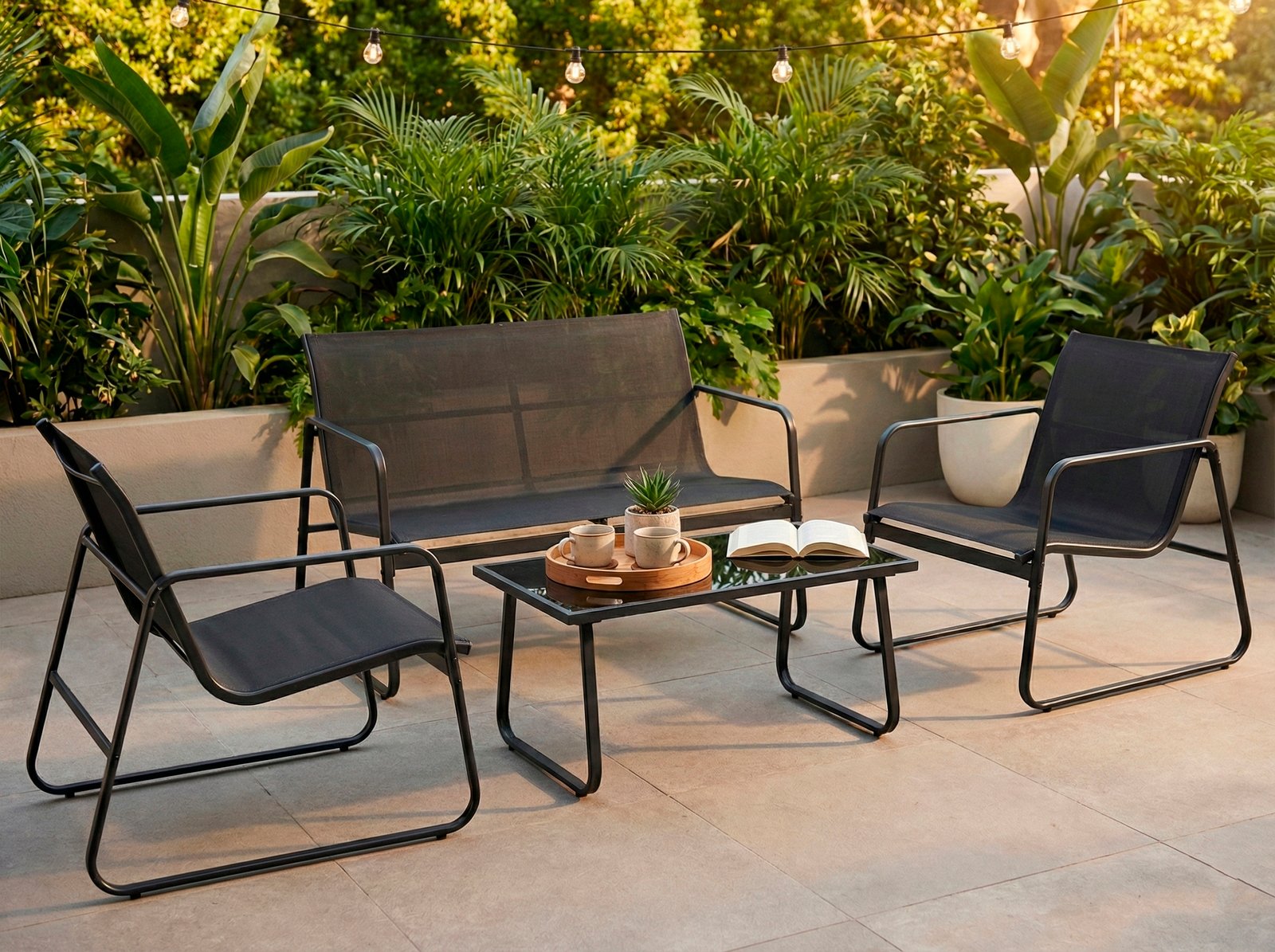 Renueva tu terraza o jardín con el Set Aero, la combinación perfecta entre estilo industrial y confort. Diseñado para resistir la intemperie sin perder elegancia, este juego de 4 piezas es ideal para disfrutar del aire libre con mantenimiento cero. Liviano, fresco y moderno.
