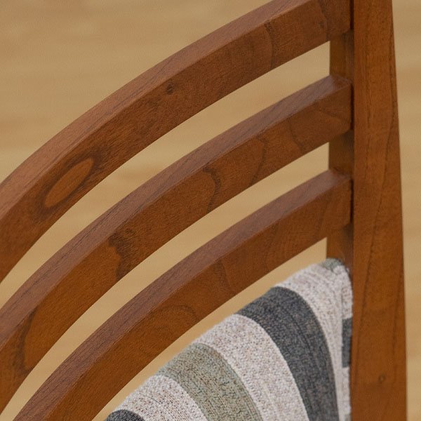 Estructura y Comodidad: La silla cuenta con una estructura de madera maciza estacionada, unida con técnica de caja y espiga, encolada y reforzada con escuadras que proporcionan una gran rigidez. El tapizado se realiza sobre goma espuma de alta densidad, asegurando comodidad y durabilidad.