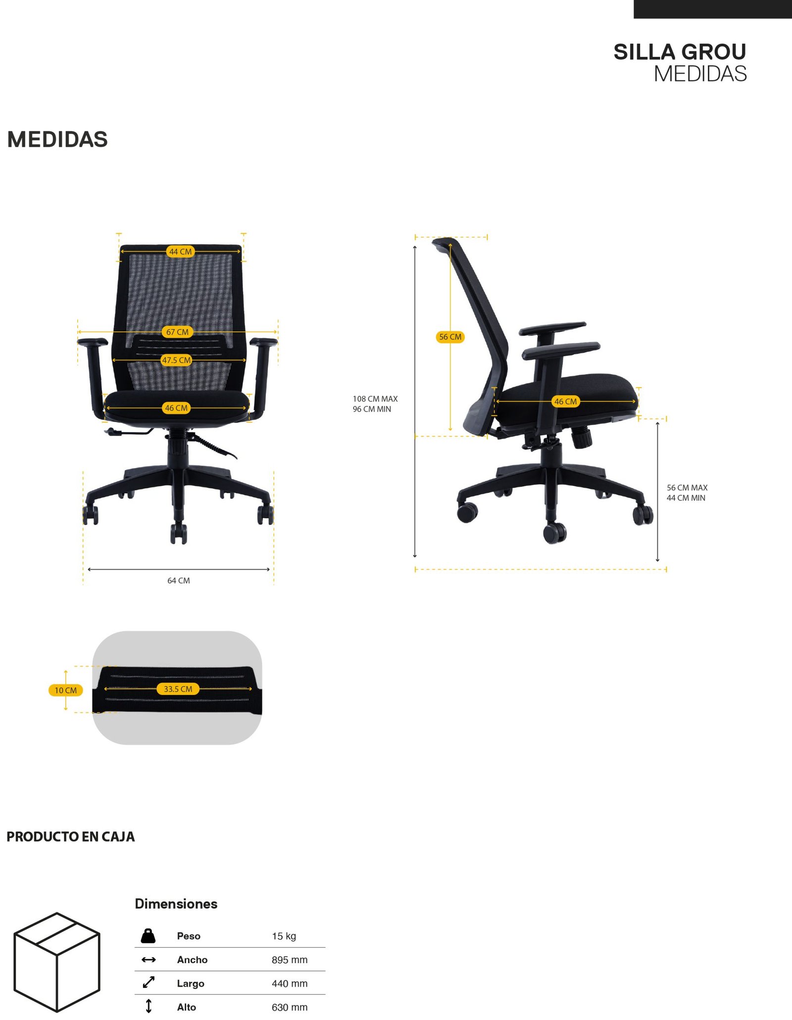 - Embalaje: Caja de 895 x 440 x 630 mm