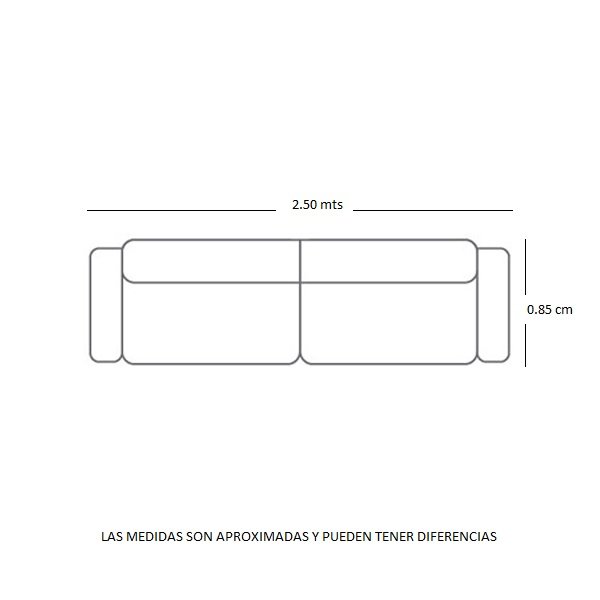 - Medidas: 2.50 m de ancho x 90 cm de profundidad x 77 cm de altura (aproximadas)